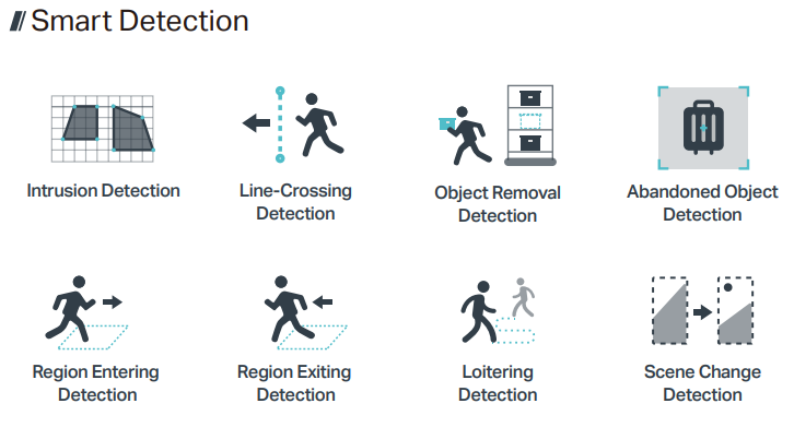 a inteligentní detekci pohybu - vstup do oblasti, překočení čáry, vniknutí a další.