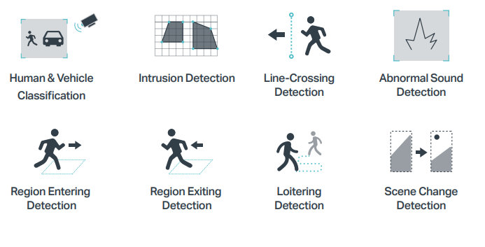 a inteligentní detekci pohybu - vstup do oblasti, překočení čáry, vniknutí a další.