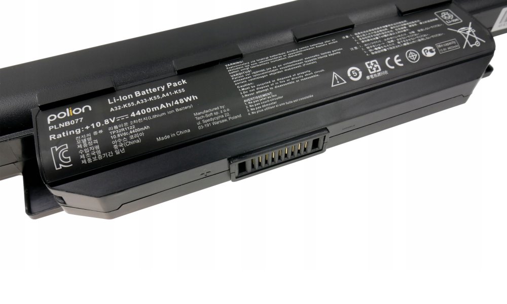 (Registrace)TRX Baterie Polion A32-K55 pro notebooky ASUS A45 A55 A75 F55 K45 K55A K55VD K75 - 4400mAh 48Wh /neoriginální
