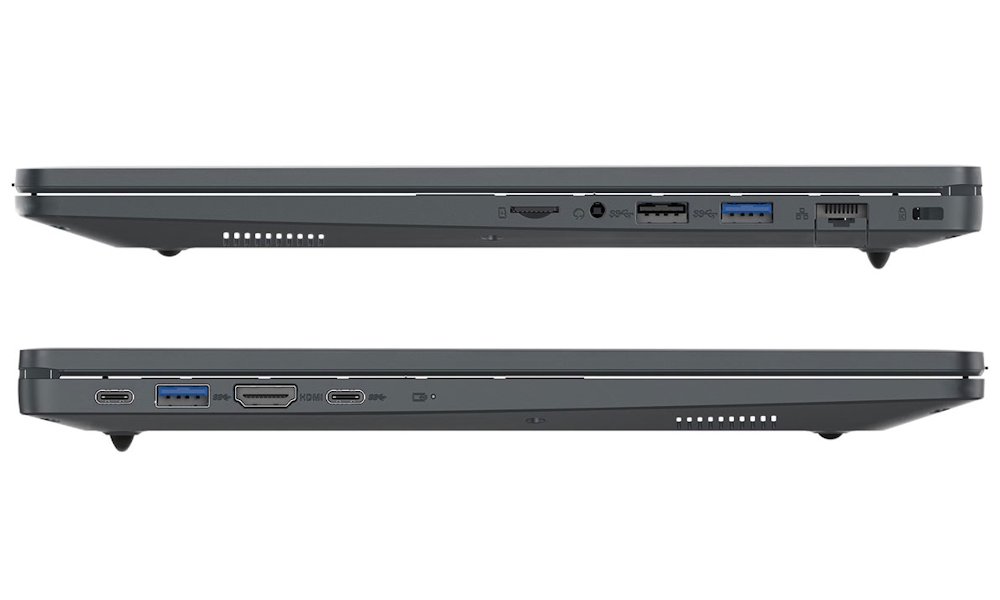 Notebook nabízí Gigabit LAN port pro stabilní připojení do sítě, dvoupásmovou Wi-Fi a Bluetooth 5.0 pro bezdrátové připojení. K dispozici jsou 2× USB 3.2 Gen1 porty, 1× USB 2.0 port a univerzální USB-C port s podporou přenosu dat, obrazu i napájení. Nechybí klasický HDMI 1.4 výstup, 3,5mm jack pro sluchátka a slot na micro SDHC/SDXC karty.
