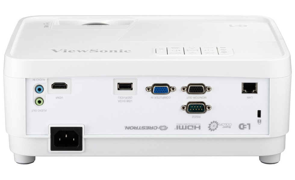 Projektor disponuje vstupem HDMI 1.4 s podporou HDCP 1.4, analogovým VGA vstupem sdíleným s komponentním vstupem, audio vstupem a výstupem 3.5 mm jack, VGA výstupem pro průchozí signál, RJ45 pro LAN ovládání a RS232 pro sériovou komunikaci. USB-A port poskytuje napájení 5V/2A pro bezdrátové adaptéry jako ViewShare.